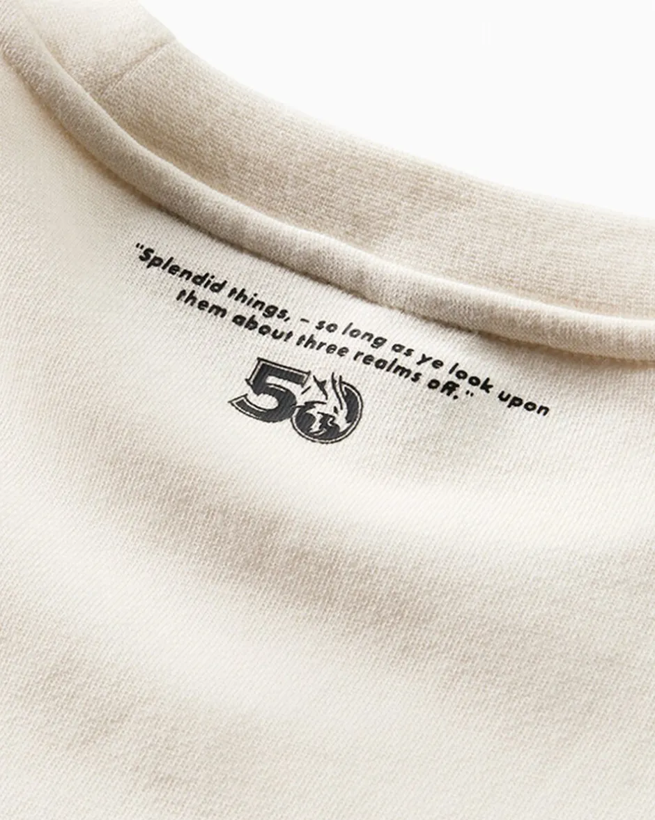 - Logo del 50° anniversario di Dungeons & Dragons e citazioni sul retro del collo