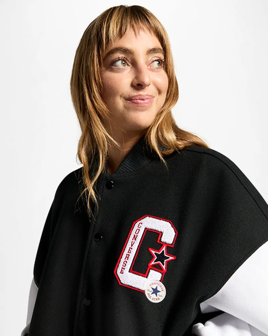 Questa giacca in stile college offre un comfort ideale senza rinunciare al fascino sportivo old school. Inoltre, le patch con vivaci ricami fanno conoscere a tutti la tua squadra preferita.