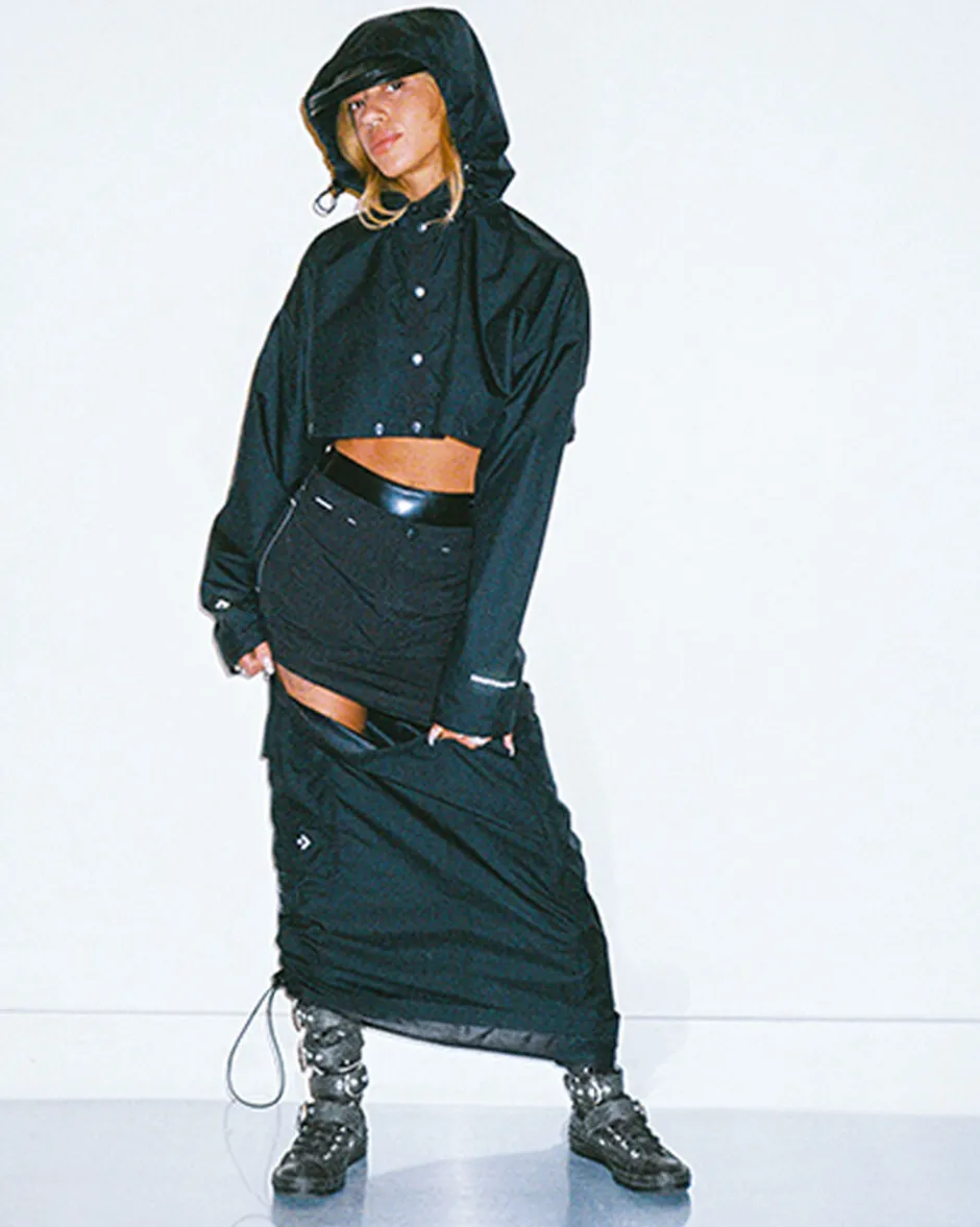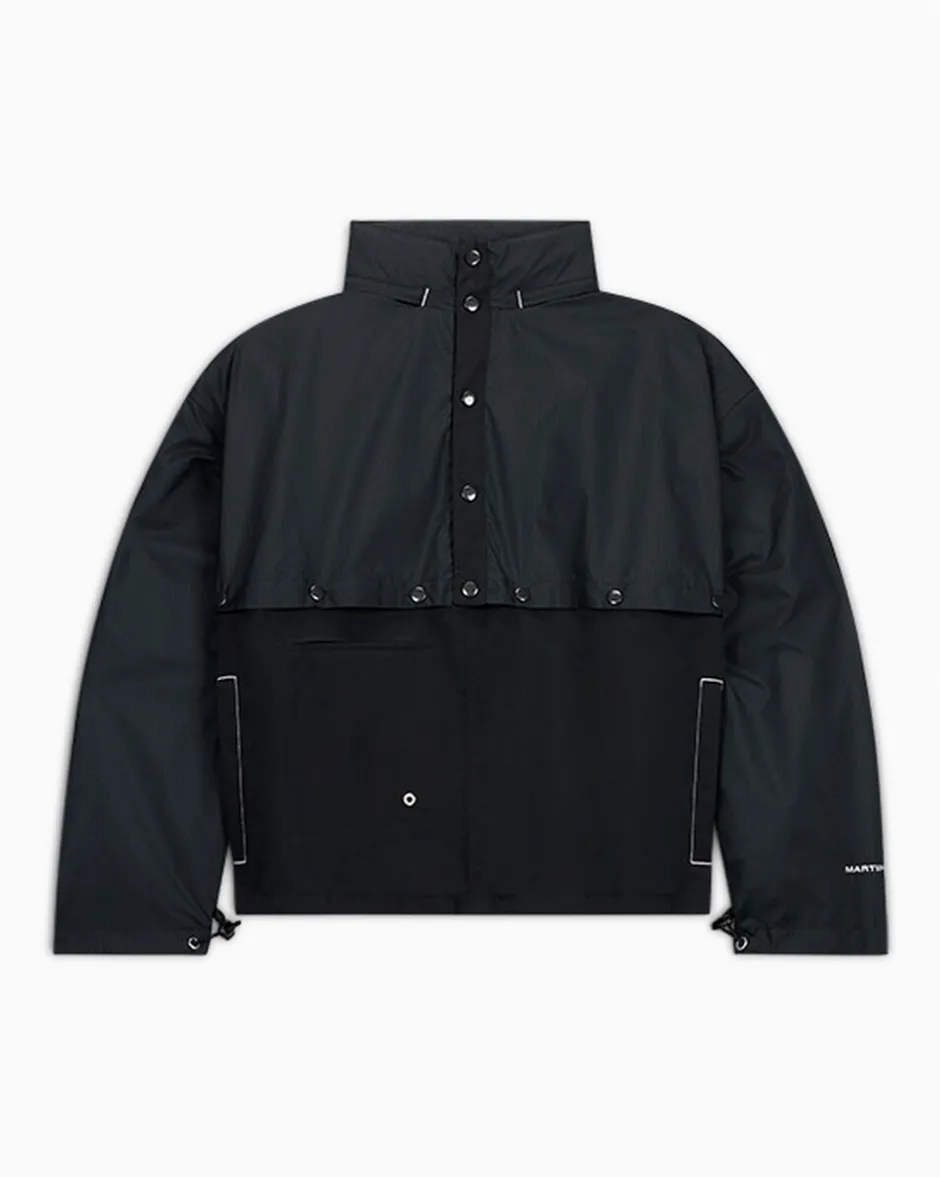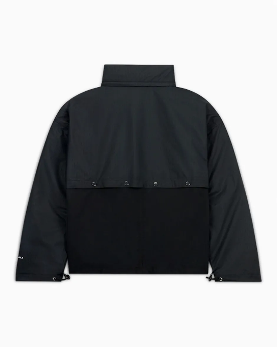 Una giacca Converse dal tocco sovversivo e in edizione limitata, firmata dalla designer di Brooklyn Martine Ali. Il design total black è caratterizzato da una struttura in nylon leggero e resistente allo strappo, impreziosito da dettagli curati: chiusure a pressione, cappuccio “packable”, cuciture a zig-zag d’impatto, travettatura e co-branding ricamato.