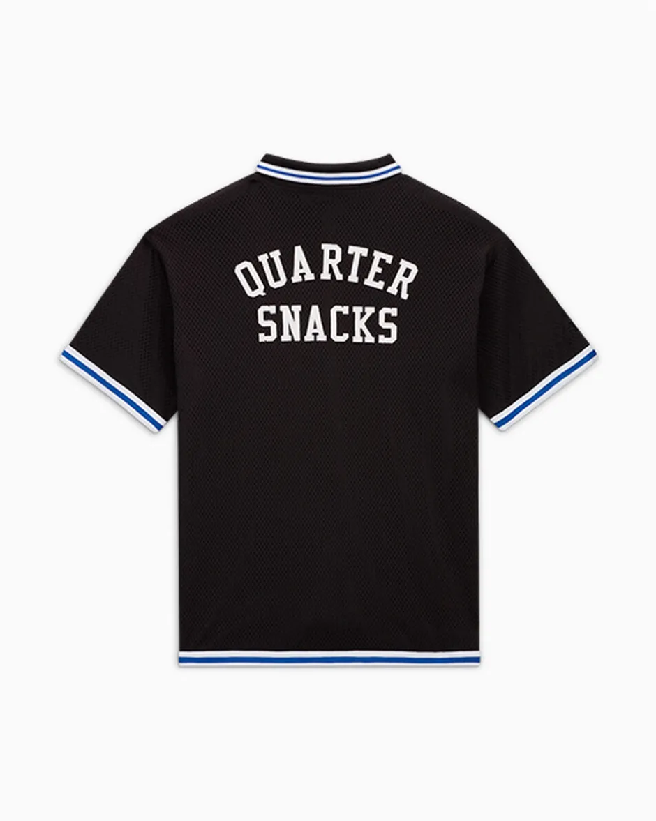 Nato nel 2005 come blog all’interno della scena del Tompkins Square Park, Quartersnacks è diventata l’autorità anti-autoritaria di New York per quanto riguarda lo skateboard e non solo. Ispirata agli archivi Converse e a un’era iconica per il panorama skate di New York, la maglia da training Quartersnacks mixa lo stile e la grinta dei video di skate anni ’90 con la visione unica del bran per quanto riguarda la cultura cittadina.