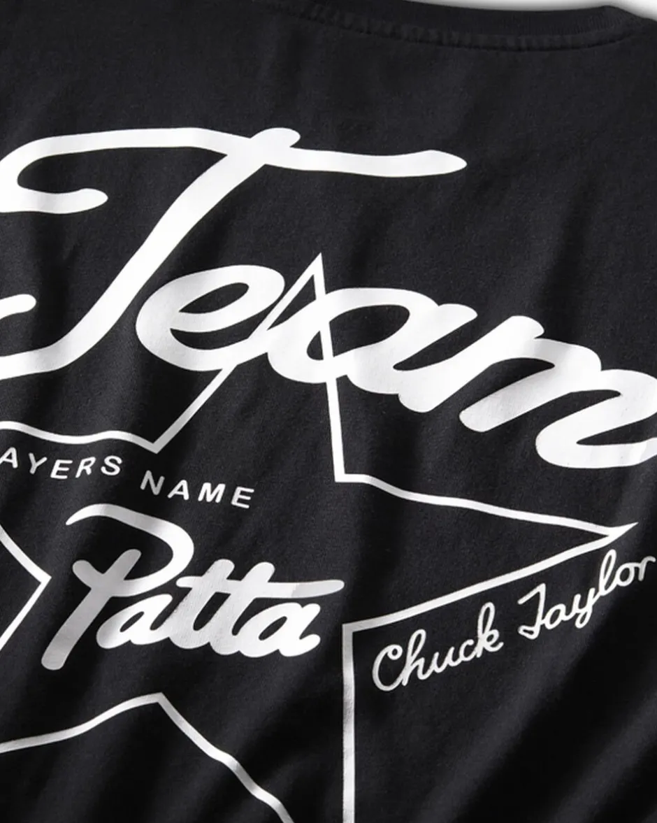 Il raffinato brand streetwear Patta, con sede ad Amsterdam, celebra due decenni di storia con la t-shirt Gold Standard in edizione limitata. Questo design combina gli iconici dettagli Chuck Taylor con splendidi elementi ricamati, cuciture in satin e il grintoso brand Patta.