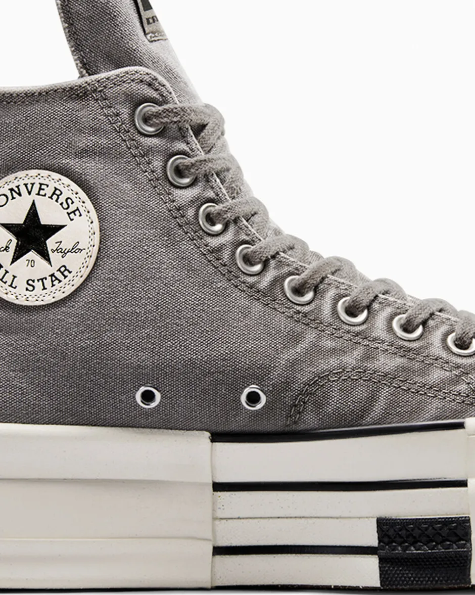Lo stilista Rick Owens punta ancora più in alto rivisitando il design della sua rivoluzionaria DRKSTAR Chuck 70 con una suola platform a doppio strato e splendidi strati di tela sovratinta. Modello disponibile nella versione “concrete” e “blonde”. Il design sovversivo celebra e distorce le linee della nostra silhouette più iconica, estendendo letteralmente le possibilità con una linguetta allungata e una platform rialzata, e aggiungendo l’inconfondibile look dall’effetto macchiettato alla punta in gomma, al tallone e alla fascia laterale.