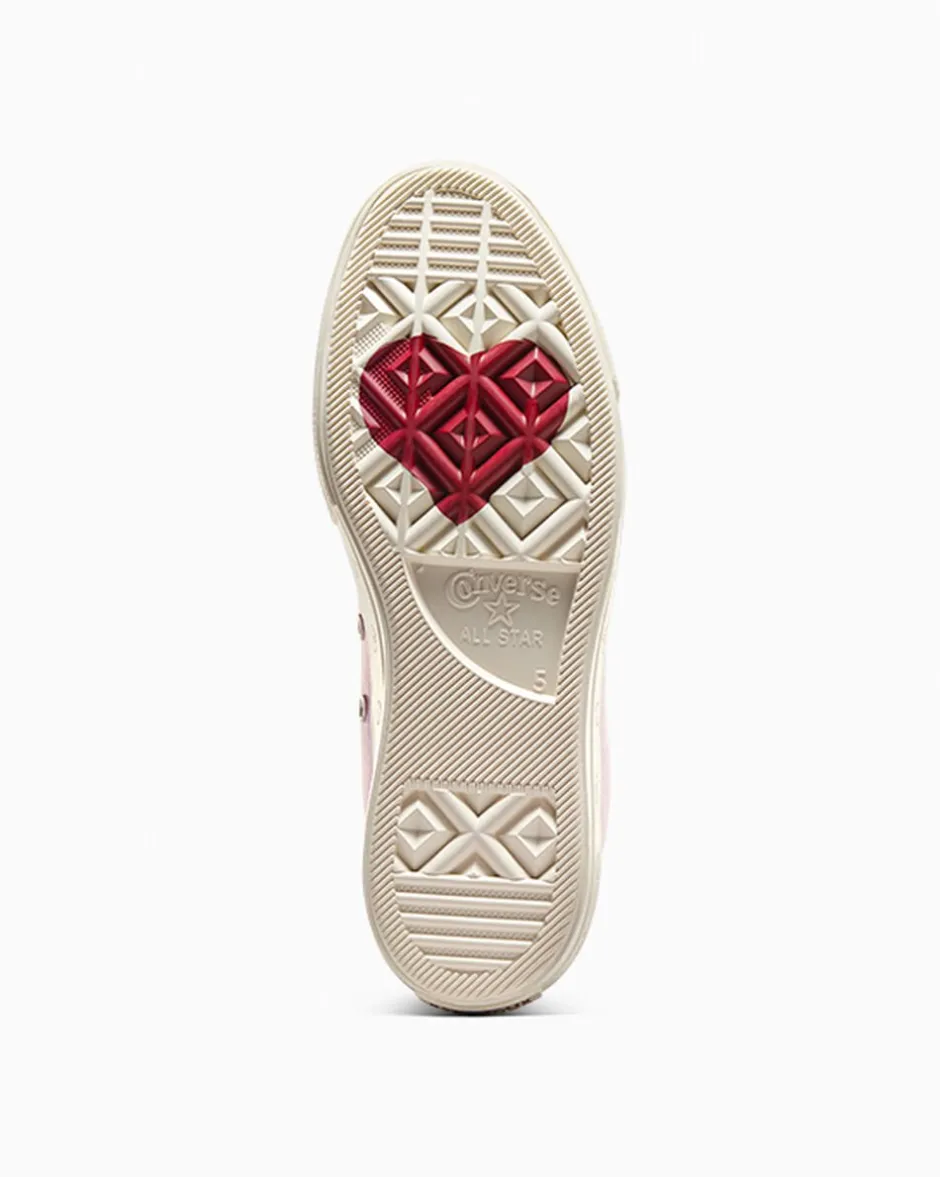 - Le suole con i cuori stampati rendono omaggio all’amore e richiamano il giorno di San Valentino