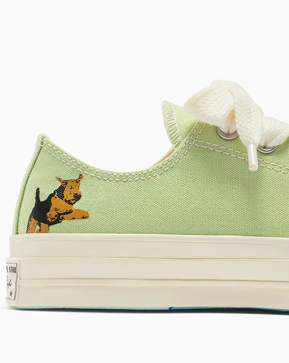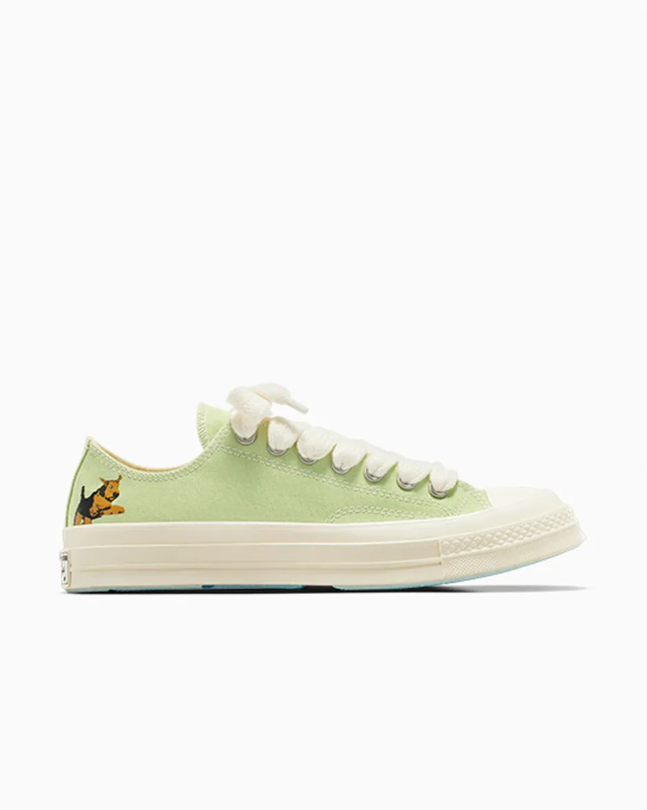 In occasione della nostra ultima collaborazione con GOLF le FLEUR*, ora Darryl, la mascotte del brand, ha la sua Chuck 70 esclusiva. Il design minimal è disponibile in 5 colori dell’inconfondibile palette di GOLF le FLEUR*, ognuno con una grafica di Derryl discreta sulla tomaia e un’altra dal look grintoso sulla suola. Look classico. Irriverente. Sofisticato. Ecco Darryl Chuck 70, progettata da Tyler, The Creator e GOLF le FLEUR*.