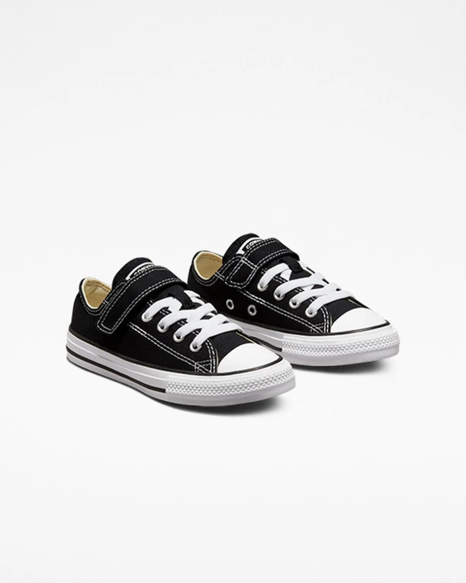 L’amatissimo modello basso viene reinterpretato per i bambini, con un sottopiede ammortizzato in SmartFOAM e cuciture e fodere ammorbidite. La chiusura a strappo e i lacci elastici consentono di indossare e togliere la scarpa facilmente, garantendo a questo modello in tela classica una calzata ancora più sicura. Il look è rifinito con i dettagli classici Chuck Taylor All Star, come l’etichetta della linguetta “All Star” in tessuto, il rinforzo sulla punta con motivo a rombi e le strisce sull’intersuola a contrasto.