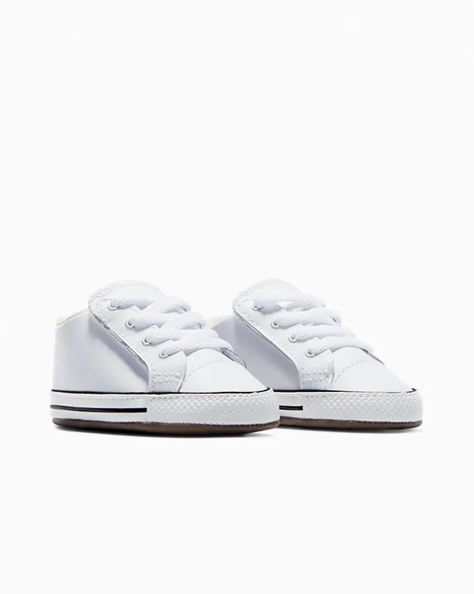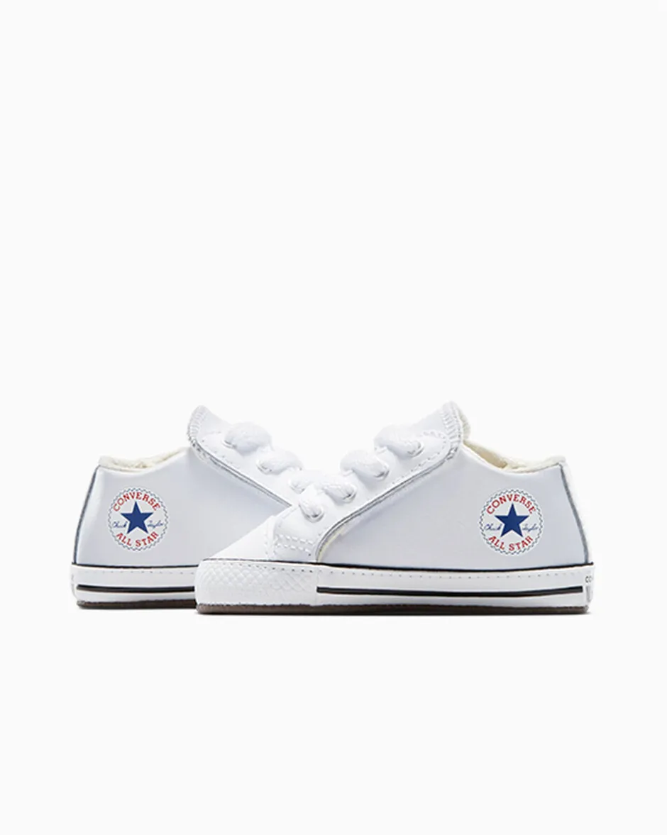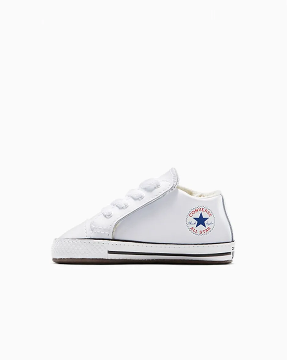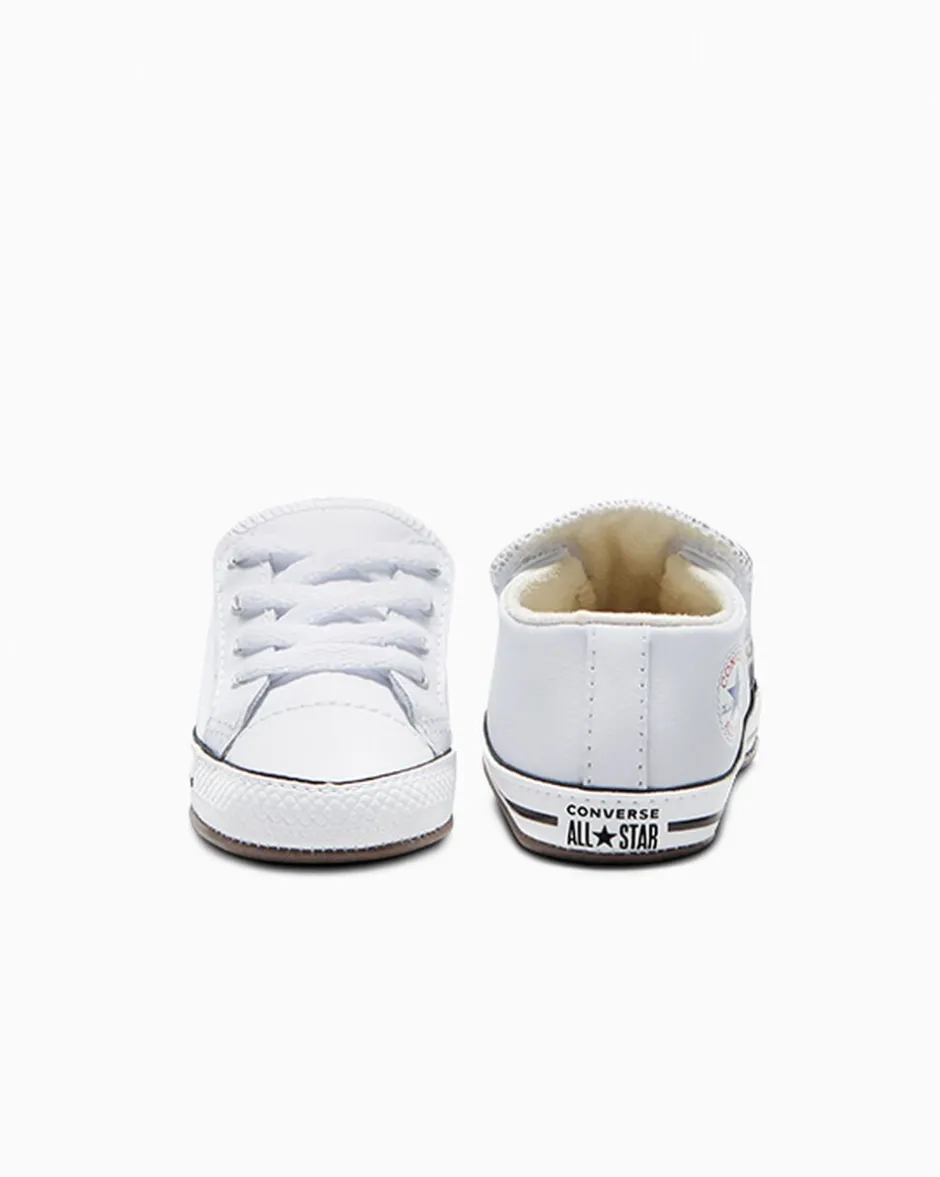 Created for the littlest ones, the Converse Chuck Taylor All Star Cribster infant shoe is all style and no hassle. Featuring a hook-and-loop mechanism that opens up the entire shoe, this is some of the easiest on and off ever. The lining, stitches, and seams have all been softened to maximize comfort. Complete with a leather upper and star ankle patch that ties back to the adult original.