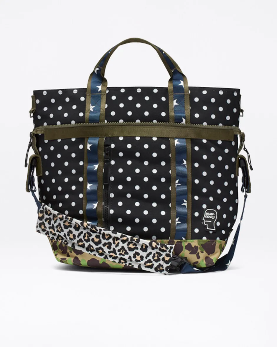 Ecco un mix di motivi grintosi, realizzati da una crew eclettica e celebre per i suoi design sovversivi ispirati al mondo di Internet. Motivo con stelle, a pois e dall’effetto camouflage: Brain Dead dà vita a una borsa utility inconfondibile, realizzata in tela di poliestere effetto manopesca. Porta con te tutto l’indispensabile in questa borsa Brain Dead in edizione limitata.