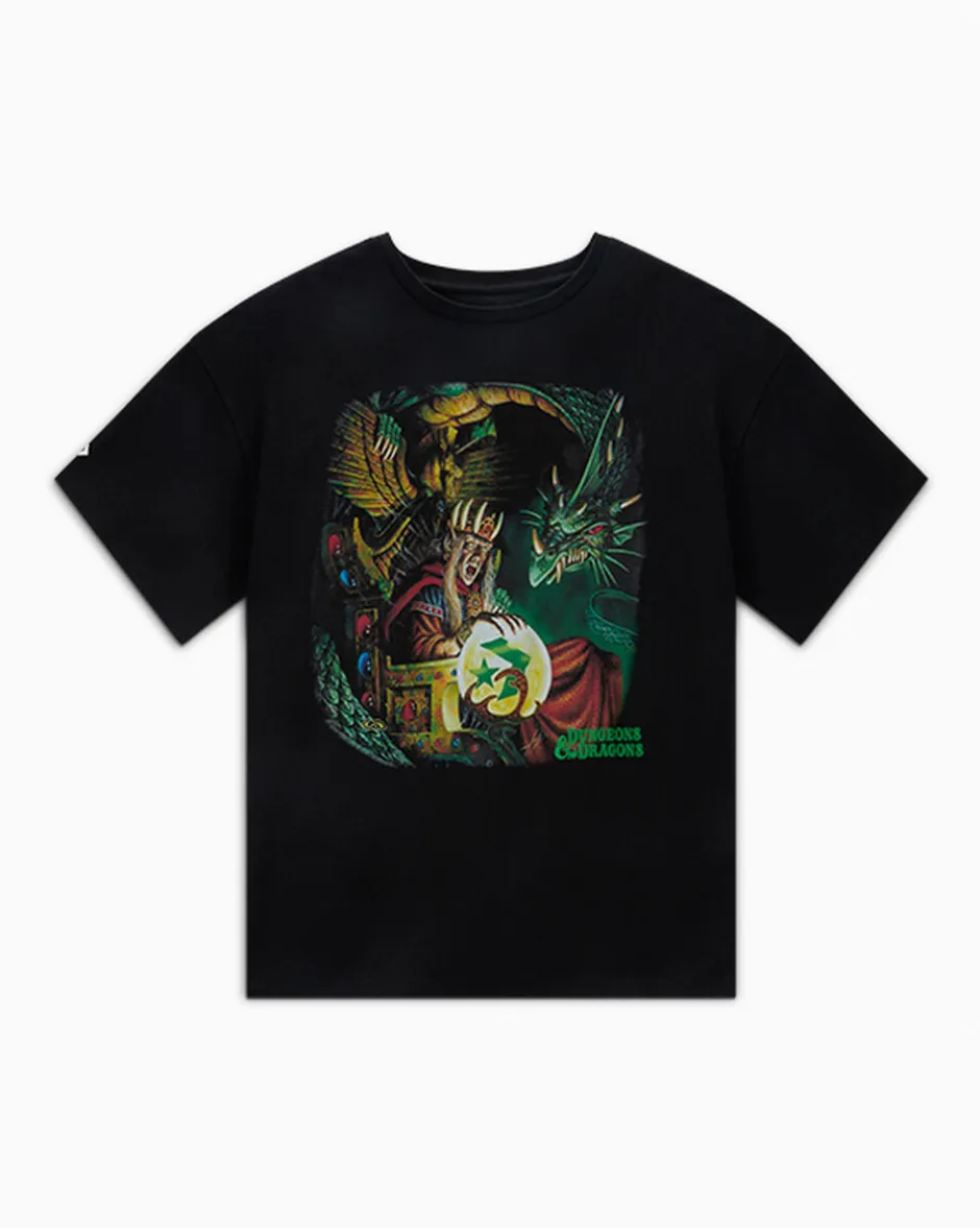 Per chi ama l’avventura! Converse celebra i 50 anni di Dungeons & Dragons con una t-shirt in edizione limitata con la grafica di una delle bestie più famigerate: il malvagio drago verde Cyan Bloodbane. Il design abbina la grafica in inchiostro in gomma a dettagli unici e una scritta per il 50° anniversario.