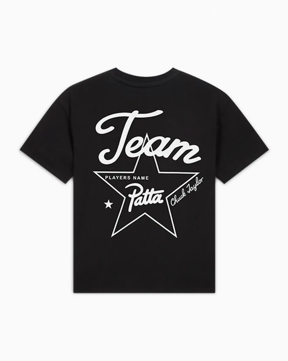 Il raffinato brand streetwear Patta, con sede ad Amsterdam, celebra due decenni di storia con la t-shirt Gold Standard in edizione limitata. Questo design combina gli iconici dettagli Chuck Taylor con splendidi elementi ricamati, cuciture in satin e il grintoso brand Patta.