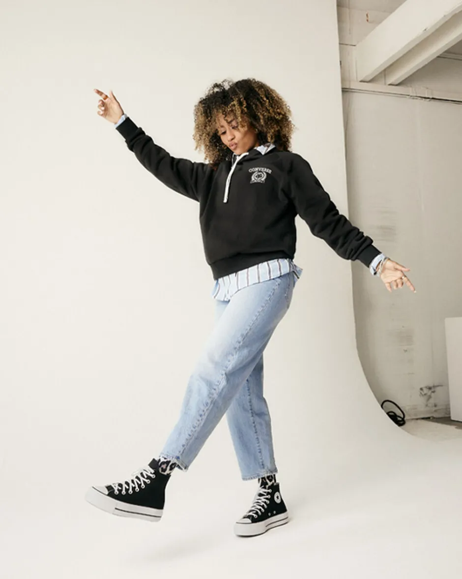 Guarda le tue giornate dall’alto con queste Chuck platform. Suola più alta per avvicinarti un po’ di più alle nuvole, schiuma ultraconfortevole per darti la sensazione di camminarci sopra. E le abbini con qualunque outfit, grazie al design classico in tela dai colori versatili, inconfondibilmente Chuck.