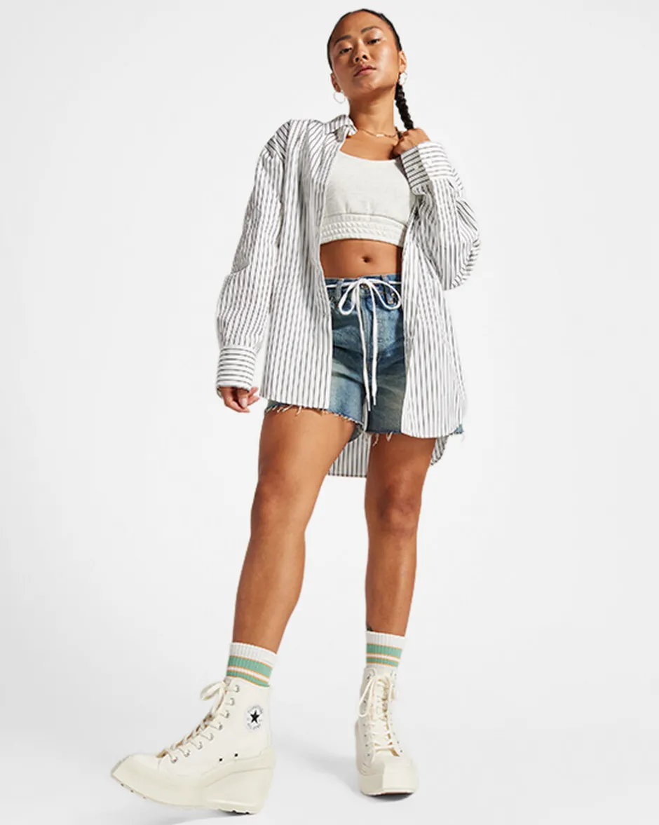 Hai trovato le tue nuove platform preferite. Chuck 70 De Luxe diventa ancora più grintosa grazie al tacco a zeppa sagomato. Mantiene i dettagli ispirati alla moda degli anni Novanta, per un look che fonde passato e futuro.